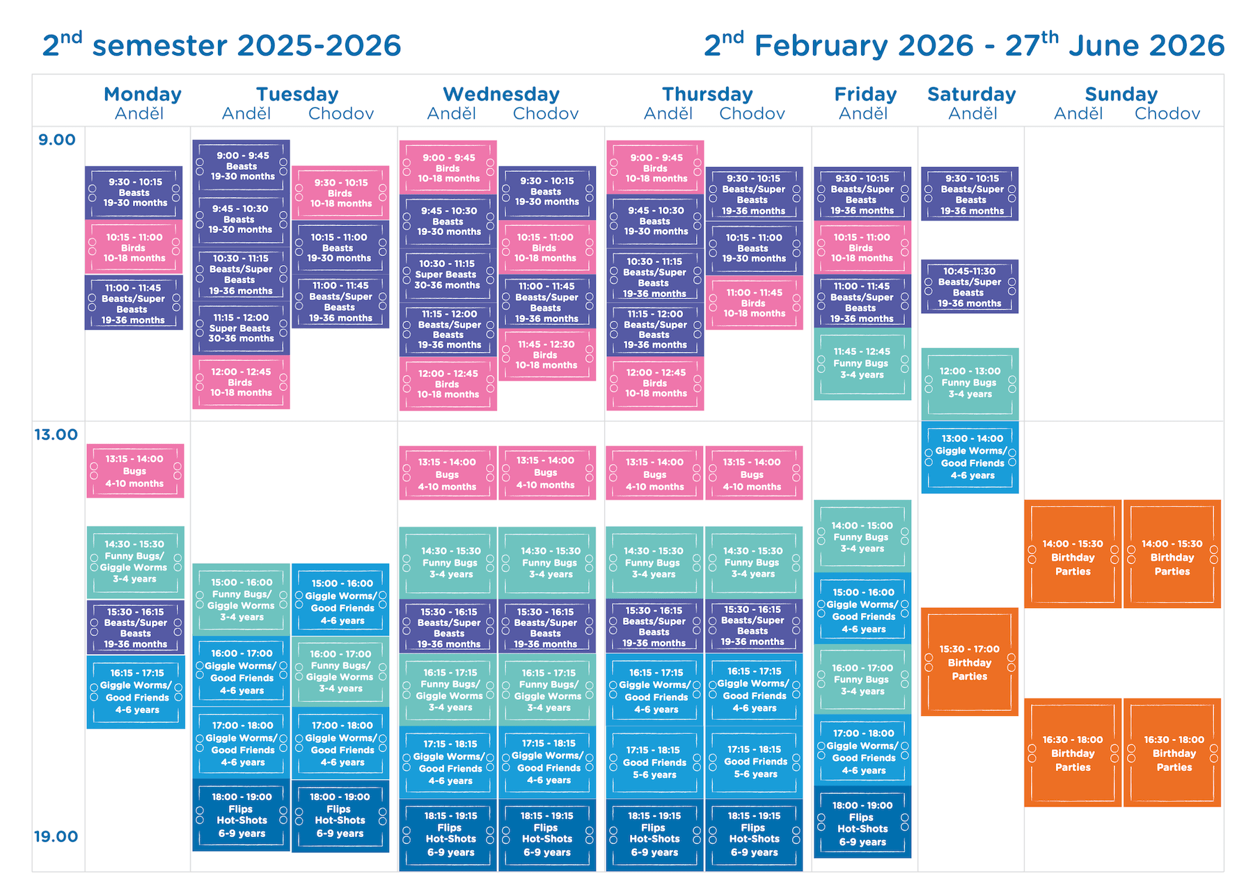 A continuous program nurtures real growth by supporting and celebrating every stage of a child's physical, social, and cognitive development. From 4 months to 12 years, always something new